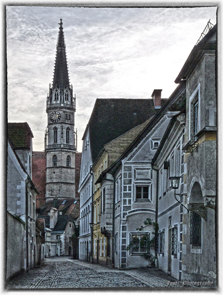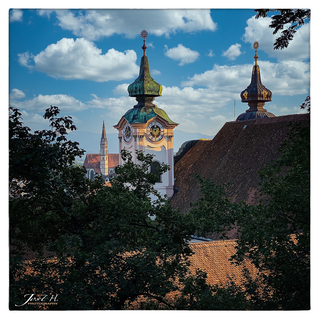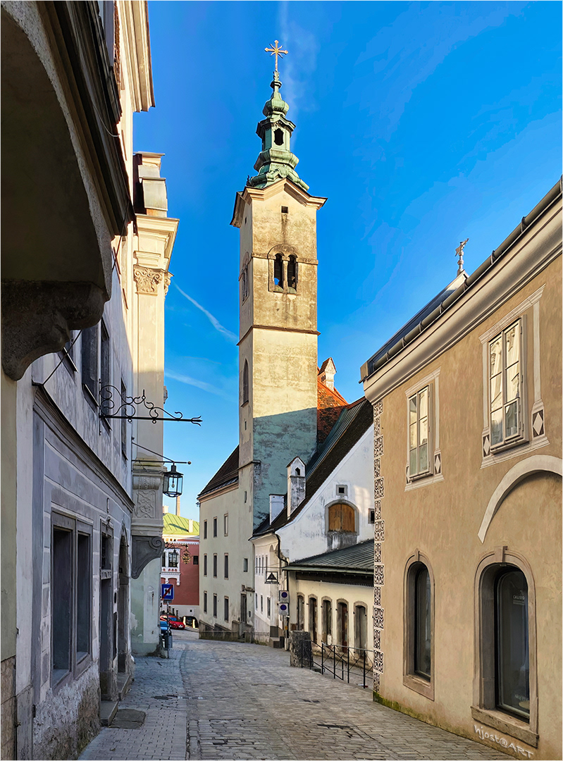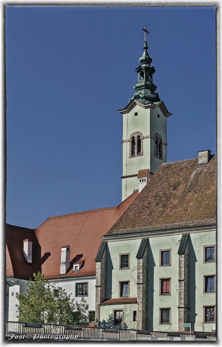 Blick zum Turm des Bürgerspitals in Steyr