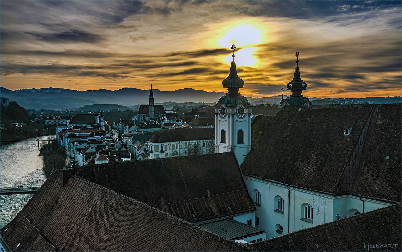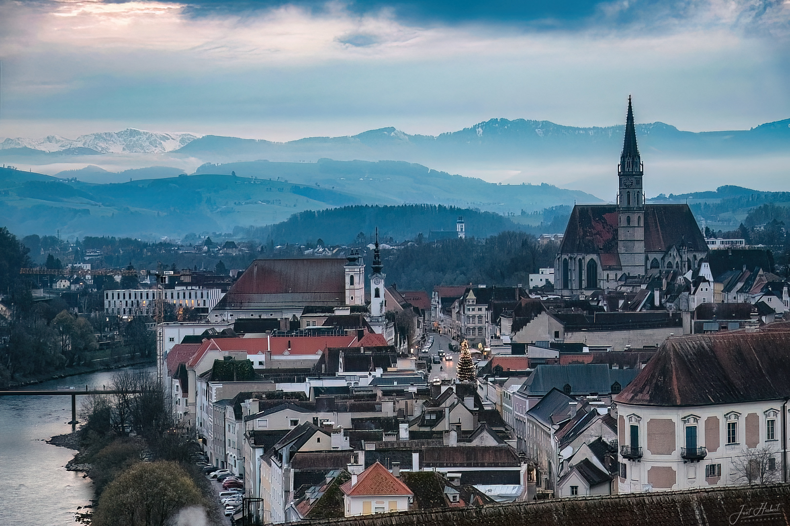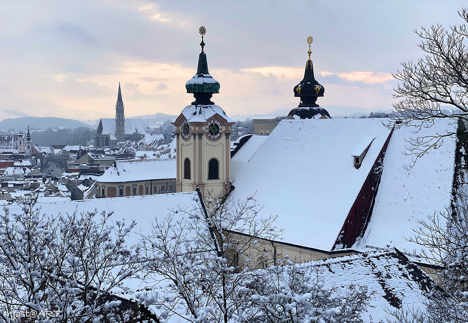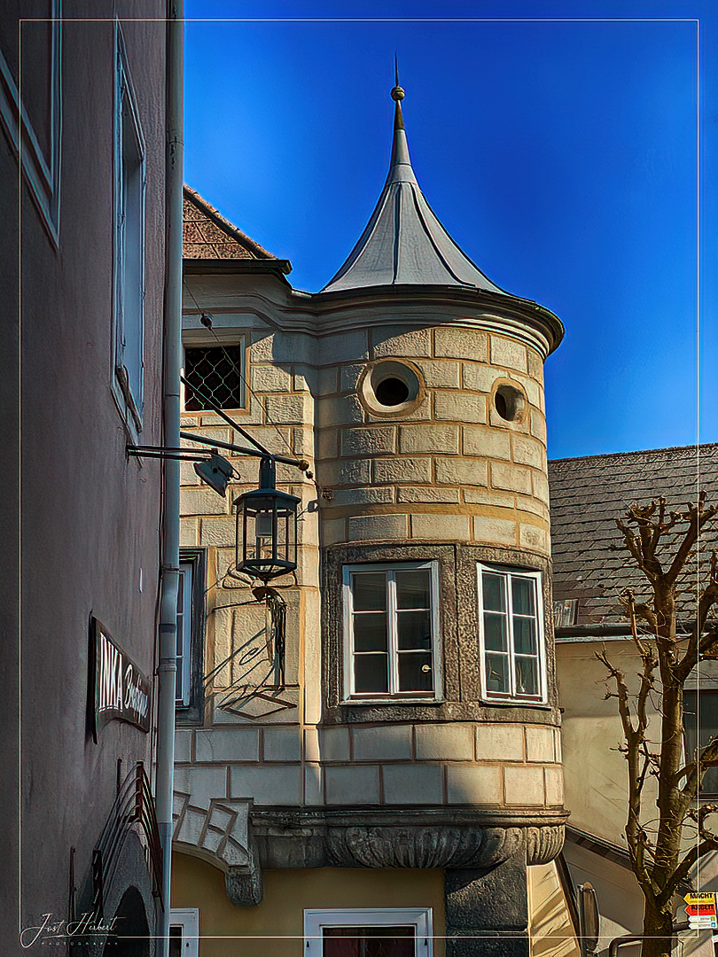 Blick zum Turm des Bürgerspitals in Steyr